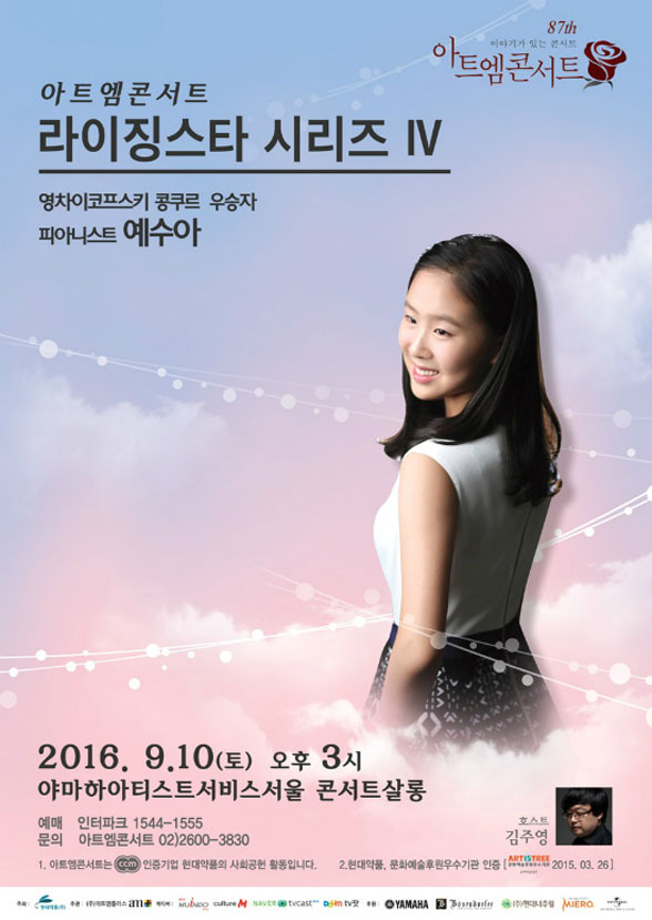 ¿¹¼ö¾Æ´Â ¸¸ 9¼¼¿¡ ±ÝÈ£¿µÀçµ¶ÁÖȸ·Î µ¥ºßÇßÀ¸¸ç, ¾î¸° ³ªÀÌ¿¡µµ dzºÎÇÑ ¿¬ÁÖ °æÇèÀ» °®Ãß°í ÀÖ´Â Â÷¼¼´ë ´ëÇ¥ ÇǾƴϽºÆ®·Î Æò°¡¹Þ°í ÀÖ´Ù. Çѱ¹¼îÆØÄáÄí¸£, À½¿¬ÄáÄí¸£, TBC À½¾ÇÄáÄí¸£¸¦ ºñ·ÔÇÑ ¿©·¯ ÄáÄí¸£¿¡¼ ¿ì½ÂÇϸç ÀÏÂïÀÌ µÎ°¢À» ³ªÅ¸³½ ±×³à´Â 11¼¼ºÎÅÍ ¼ö¿ø½Ã¸³±³Çâ¾Ç´Ü, ±¹¸³°æÂû±³Çâ¾Ç´Ü, °æºÏµµ¸³±³Çâ¾Ç´Ü µî°ú Çù¿¬Çϱ⵵ Çß´Ù.