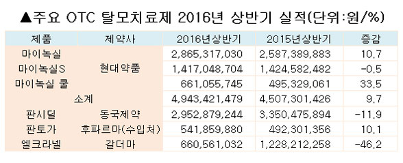 Å»¸ðÀα¸ Áõ°¡¿¡µµ ºÒ±¸ ÀϹÝÀǾàǰ Å»¸ð¾à ½ÃÀåÀº ÁÖÃãÇß´Ù. Á¦Ç° ´Ù¾çȸ¦ ²ÒÇÑ Çö´ë¾àǰ '¸¶À̳ì½Ç' Á¤µµ¸¸ ¿Ï¸¸ÇÑ »ó½Â°î¼±À» ±×¸®´Âµ¥ ±×ÃÆ´Ù.