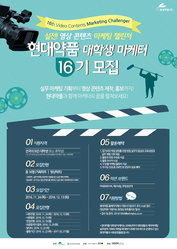 'Çö´ë¾àǰ ´ëÇлý ¸¶ÄÉÅÍ 16±â'´Â ¸¶ÄÉÆÃ È°µ¿¿¡ °ü½ÉÀÌ ÀÖ´Â ´ëÇлýÀ̶ó¸é ´©±¸³ª Áö¿øÀÌ °¡´ÉÇϸç, Áö¿ø Á¢¼ö ¹× ±âŸ ÀÚ¼¼ÇÑ »çÇ×Àº Çö´ë¾àǰ ȨÆäÀÌÁö(www.hdpharm.co.kr)¿¡¼ È®ÀÎ ÇÒ ¼ö ÀÖ´Ù.